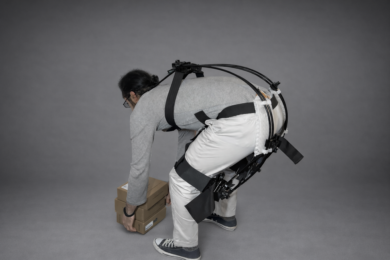 Introducing Inonim Back: a high-tech lower back support. This lightweight exoskeleton provides up to 9 kg of lower back support and lifting assistance when bending at the waist.